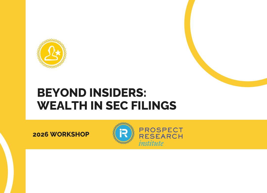 Kick off 2026 with a fresh perspective! Whether you’re new to the Prospect Research Institute or a long-time participant, join Jen Filla for an exclusive backstage tour. Discover how memberships,… Read More »Step Behind the Scenes in 2026: Your Guide to Prospect Research Success!